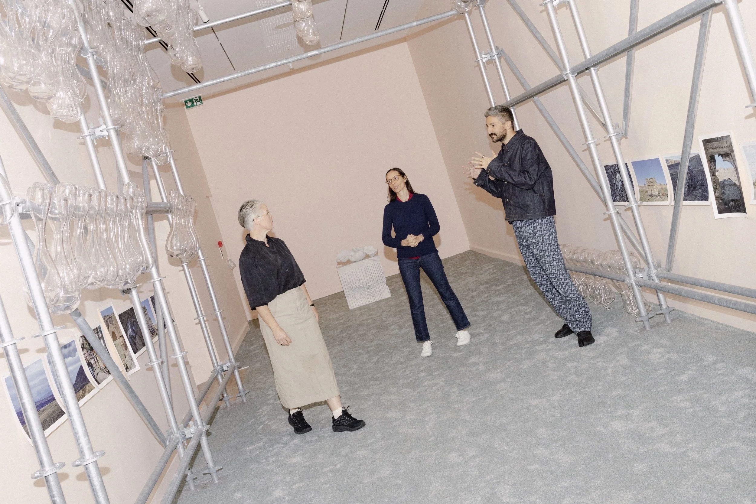Å: Peo, serginin yaratım sürecinin tamamında, özellikle Türkiye'de yerinde yapılan işlerde yer aldı. Doğa Ana'nın camını ararken ve Denizli'deki cam atölyesini ziyaret ederken bize eşlik etti. Peo, bir fotoğrafçı olarak, şeylerin kökenlerini gözlemleme ve ortaya çıkarma konusunda olağanüstü bir yeteneğe sahip. Eserleri, malzemelerin ve mekanların ince ayrıntılarını ve görünmeyen niteliklerini yakalamaya odaklanıyor ve bu görme biçimi de iş birliğimizi derinden etkiledi.